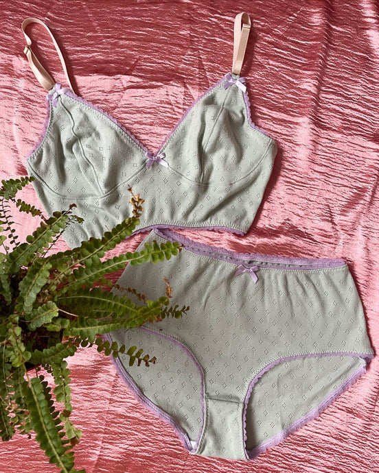 Miss Crofton brings together all things girly with a womanly sophistication. Their attention to detail and fine quality has won admirers including fashion influencers, modern makers and artists. Miss Crofton buy end of roll rather than producing new producing new materials with environmental goals to reduce overconsumption. In their studio, the in-house team cut, sew and finish all garments for the highest quality lingerie.
