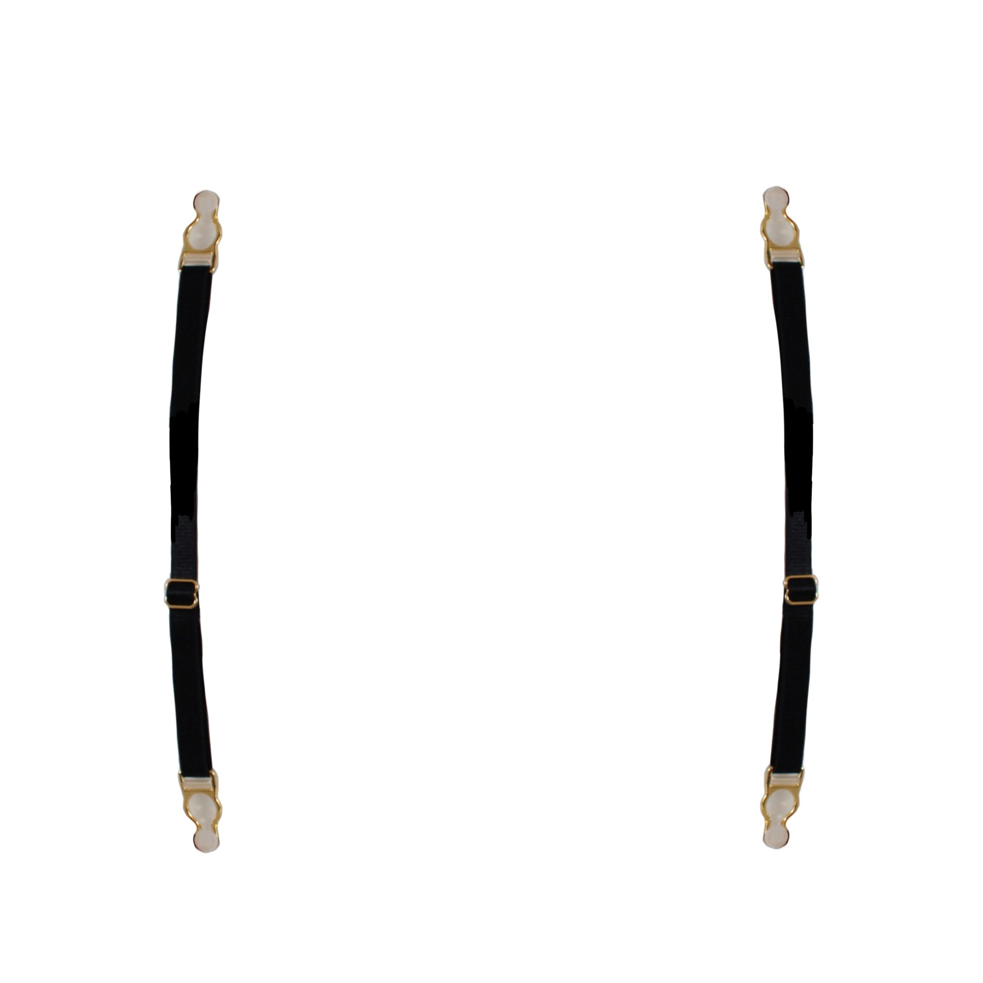 Elevate your every day Jilly knicker with our adjustable, detachable black suspender straps! Simply attach to the Jilly Thong or Brief to turn them into a sleek and sexy show stopping piece. Style with garters or stockings to create a jaw dropping ensemble. Our 24K gold plated hardware makes this versatile accessory pop against any classic black lingerie.