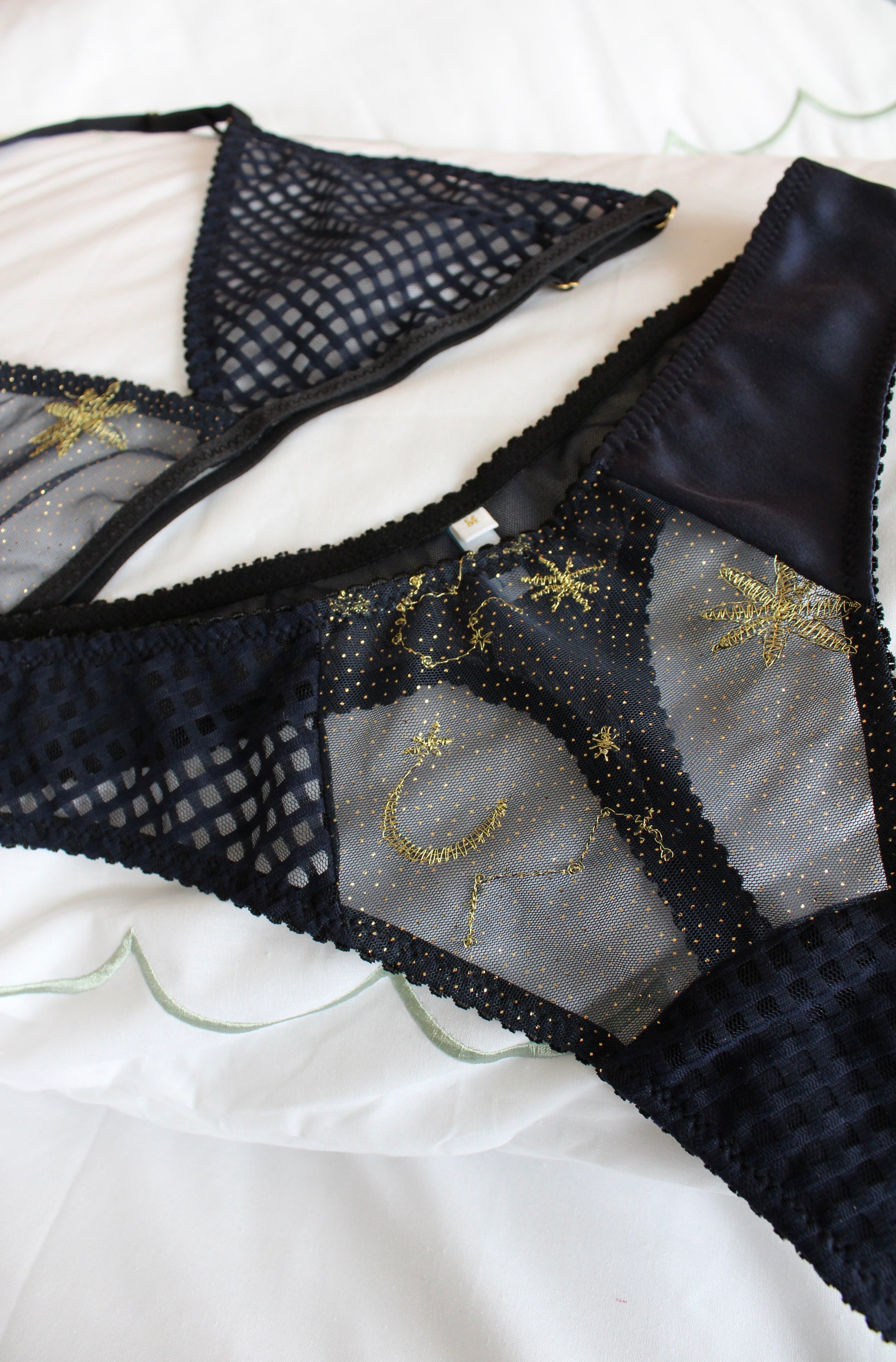 Indulge in Miss Vivienne's latest offering for this years spooky season! Let us hand pick complimentary tones and textures from our deadstock fabrics to create a show stopping Frankenbra for you! Our iconic triangle bralette is the perfect piece for lounging in comfort this Autumn. Choose from light or dark colours and we will take care of the rest. Pair with the Frankenthong for the perfect Frankenset!