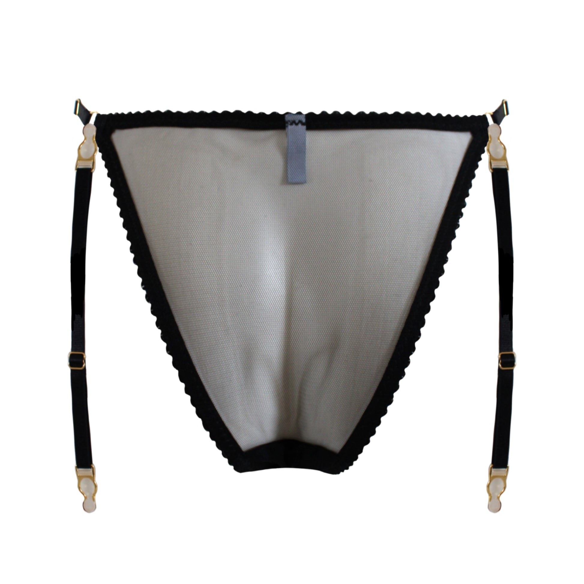 Elevate your everyday lingerie with the Jilly range. Soft, black sheer tulle lays flat against the body, perfect for daily wear. This classic high leg strap brief is fully adjustable (including the suspender straps!) so you can achieve maximum comfort and our iconic gold hardware is 24K gold plated for the ultimate long lasting luxury lingerie experience. Simply remove the suspender straps for day to day wear and reattach to style with garters or stockings. Pair with the Jilly Bralette and to create a beautiful classic black set.