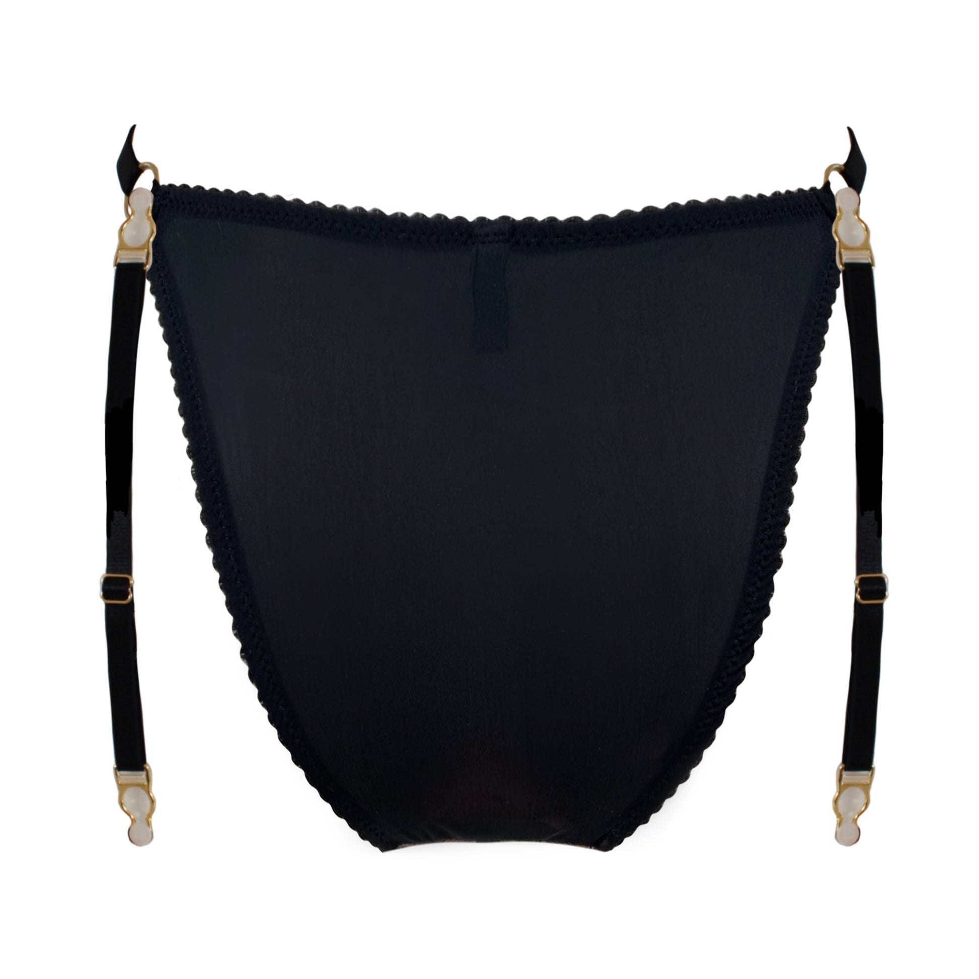 Indulge in opulent romance with Valentina. Bold, vibrant red and pink florals dance across pink tulle pairing perfectly with our signature 24K gold plated hardware and plush black elastic. This cheeky brief is designed to flatter your curves with comfort in mind. Our 100% cotton gusset and adjustable side straps keep you feeling fabulous all day long. The suspender straps on the brief are completely detachable so you with turn it into a regular brief with the simplest modification! Pair with the Valentina Bra to create a romantic and luxurious everyday ensemble.
